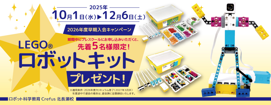 期間中にプレスクールにお申し込みいただいた方、先着5名様ロボットキットをプレゼント!